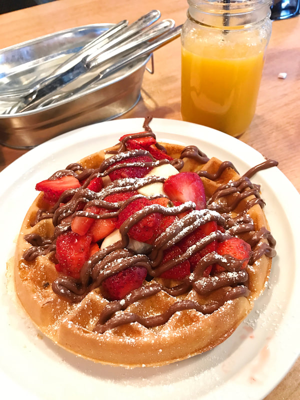 We started our journey off with brunch, at a little, cute spot in Edgewater NJ, right outside of New York, called The Pancake Factory. Although we had to wait for about 30 minutes, the line was literally out the door with police controlling traffic in and out of the parking lot, it was worth it. The menu was filled with so many different things to choose from, including over twenty different kinds of pancakes. Now, I know I was in a “Pancake Factory”, but I opted for the Chicken and Nutella Waffles. When the food came out, I was pleasantly surprised that they had served me fried chicken pieces (DRIZZLED WITH HONEY), and not chicken tenders. I don’t know about you all, but that’s always disappointing to me.