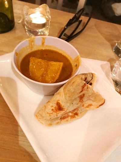 We started off with dragonfly dumplings, roti and popcorn “shrimp”(pictured above). These appetizers set the bar high, and immediately we were all pulled in and began raving about the dishes we had received so far. We joked about how becoming a full blown vegan would be a breeze, if we had someone preparing dishes like this for us, daily.